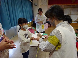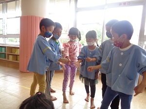 その後、“お芋のてんぷら”の触れ合い遊びが始まりました。