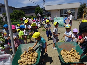 6月26日のとっても暑い日に、じゃがいも堀りをしました。