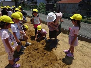 そこで園長先生が大人用のスコップを持って登場!土の中のじゃがいもはまたたくまに