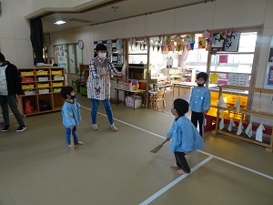 2歳児さんは、お部屋に神社を作って楽しんだり、