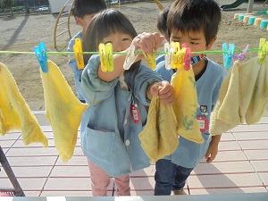 雑巾を洗って、絞ったらお外に干して。おしまい😐