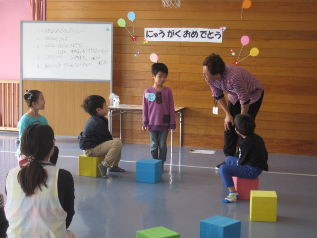 自分の名前・出身(幼稚園・保育園)・好きな色・好きな食べ物などを話して